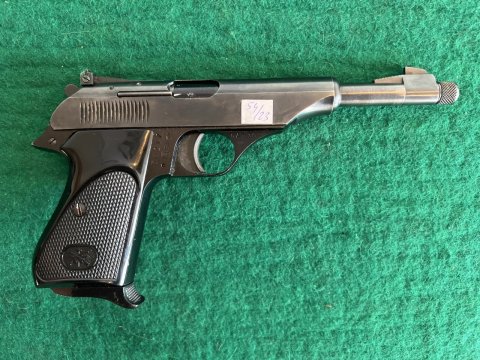 | Samonabíjecí malorážková pistole, prodloužená hlaveň se závitem. Jeden zásobník. Velmi pěkný stav. | |